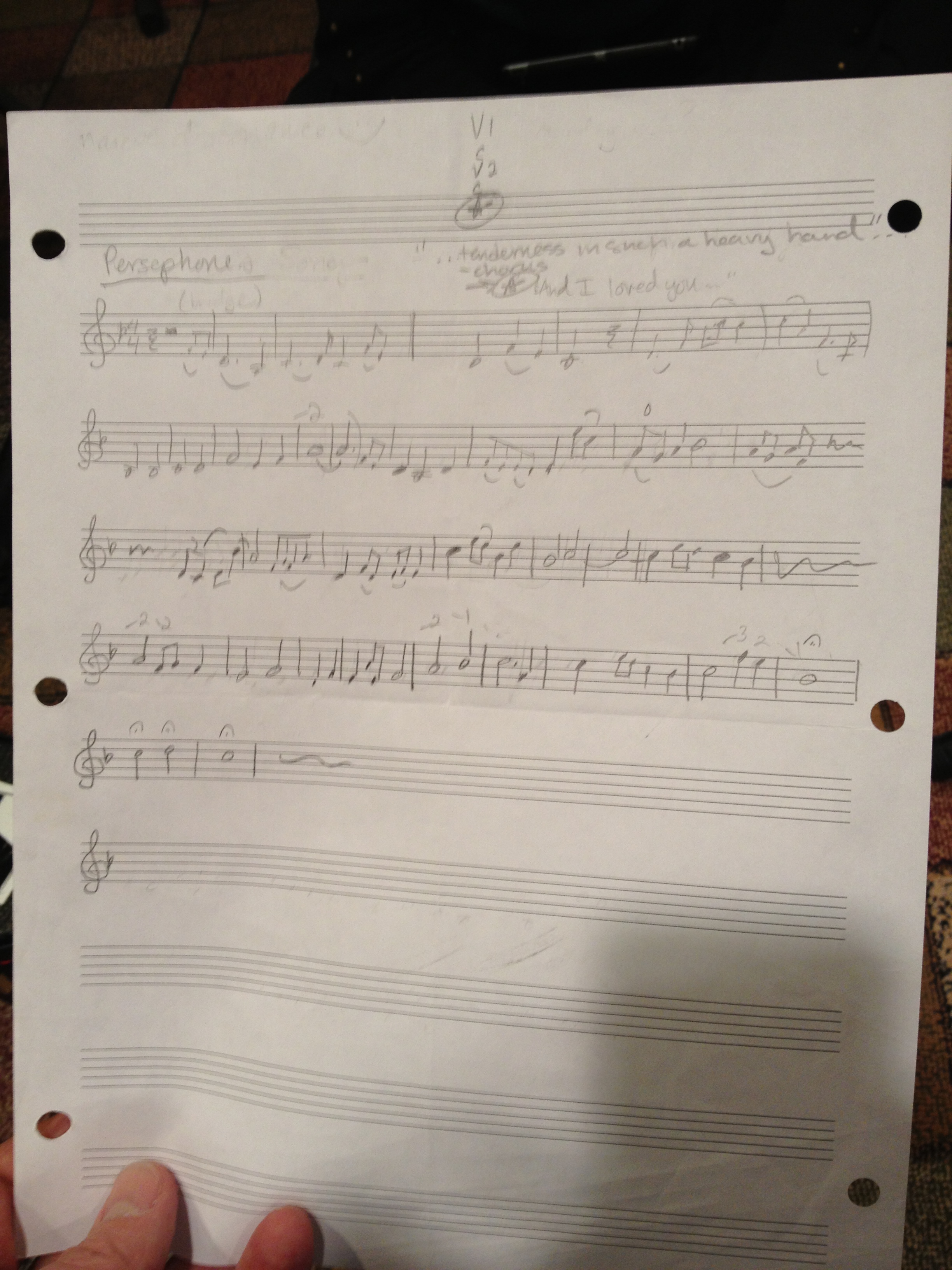 straight from her head onto sheet-music paper, Amadeus-style) the entire violin